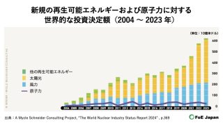 世界的に、再生可能エネルギーへの投資が拡大しています。原子力と比べてみても、圧倒的に風力と太陽光に対する投資額が大きくなっています。世界原子力産業ステータスレポート2024年版によると、ここ数十年、再生可能エネルギーへの新規投資額は原子力を...